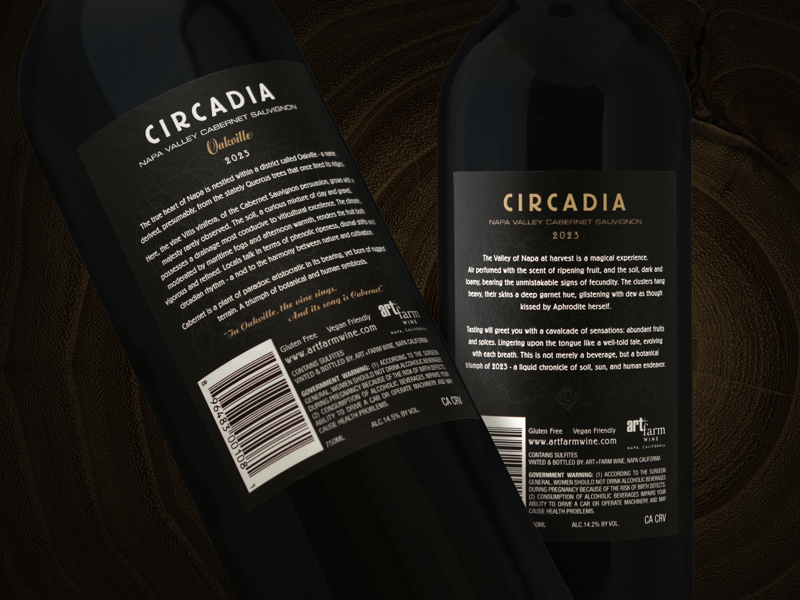 CLIENT: ART+Farm Wine, Circadia, & Circadia Oakville (Napa Valley). PROJECT: Revived and recreated artwork from an older 2009 release, selected print materials, and press setups.